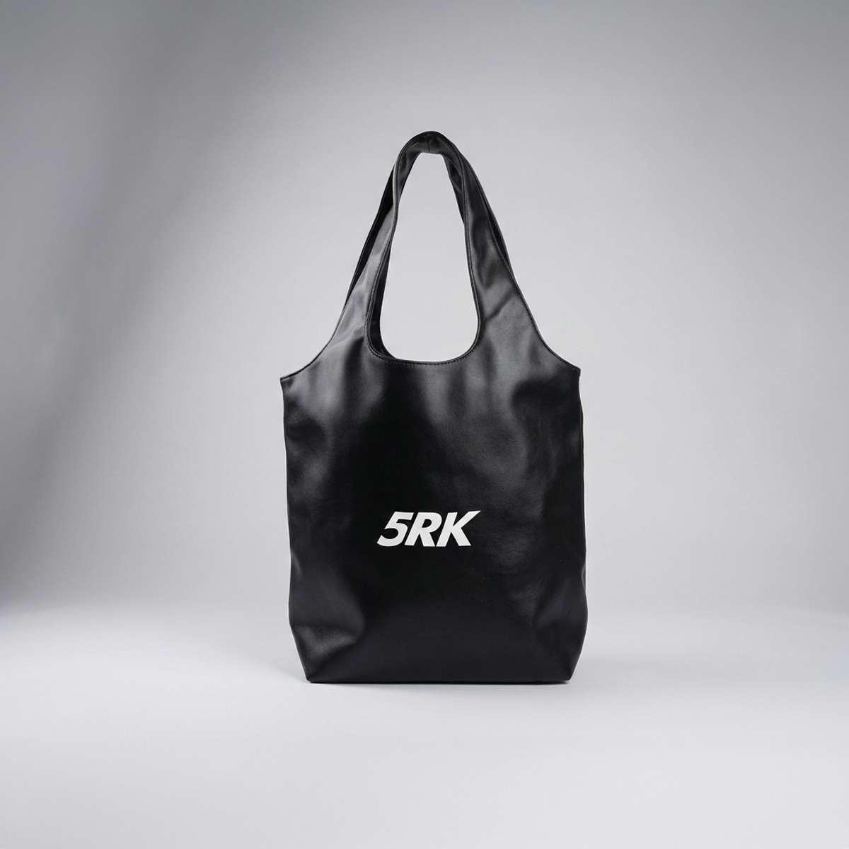 5RKのロゴを白ペイントで施した、シンプルなレザートート